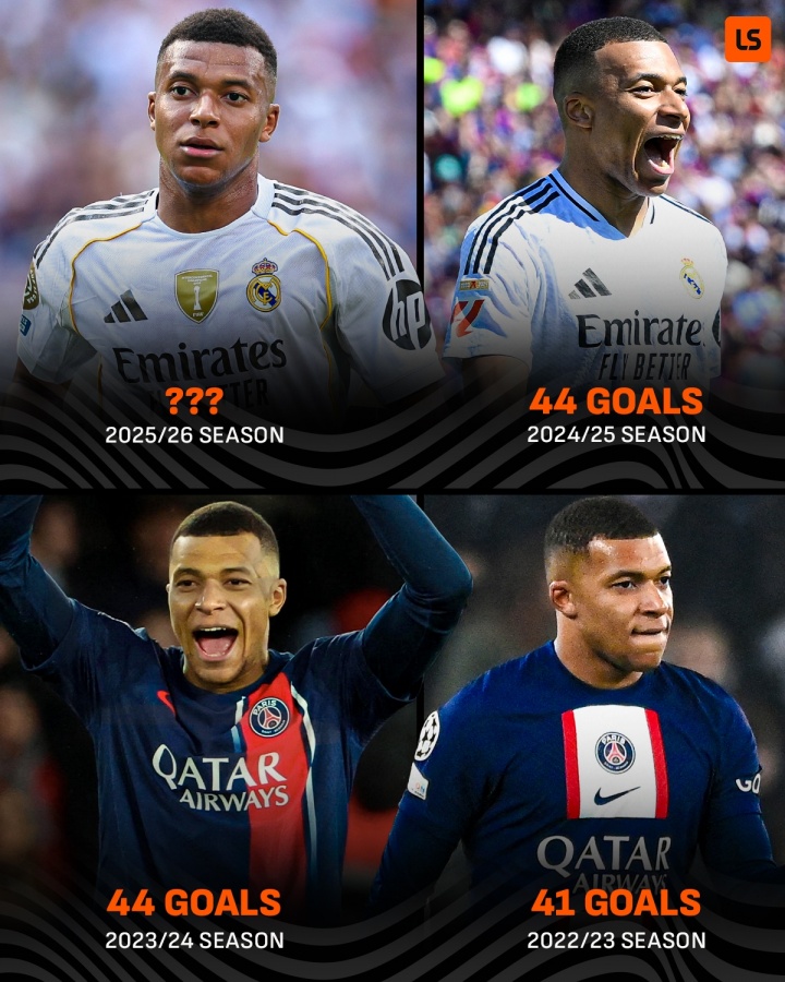 作为皇马队内核心之一,姆巴佩的实力毋庸置疑。26岁的姆总此前三个赛季进球均达到40+,新赛季他能否保40冲50呢?